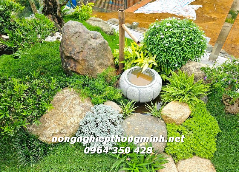 - Bố trí non bộ, thác nước, cây xanh tự nhiên nhưng có kiểm soát